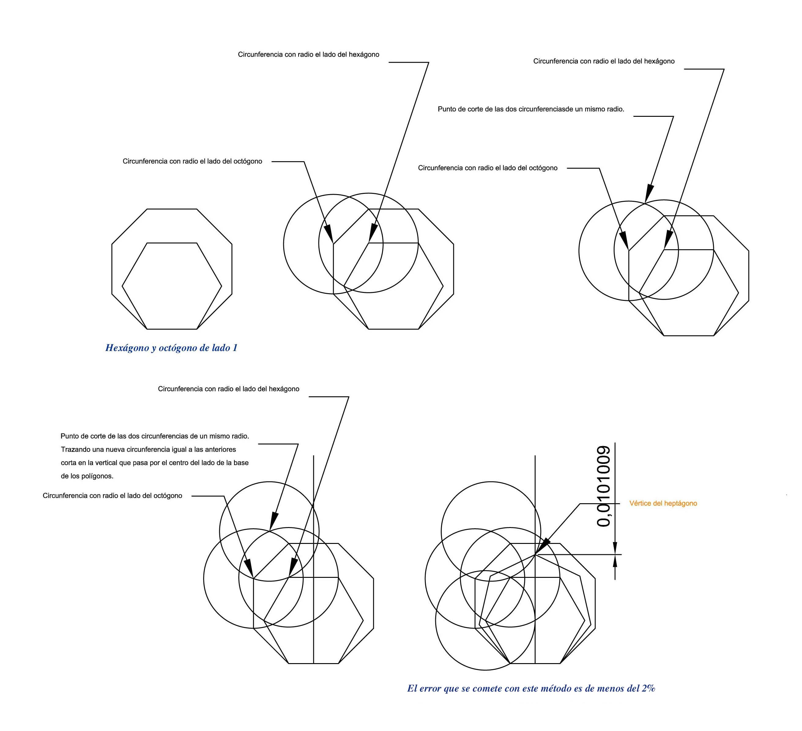 Un método sencillo para obtener un heptágono regular con bastante exactitud, no es un método exacto, ya dijo Gaus que un polígono regular n de lados es construible con regla y compás con las condiciones clásicas si y sólo si la descomposición en factores primos de n es de la forma: