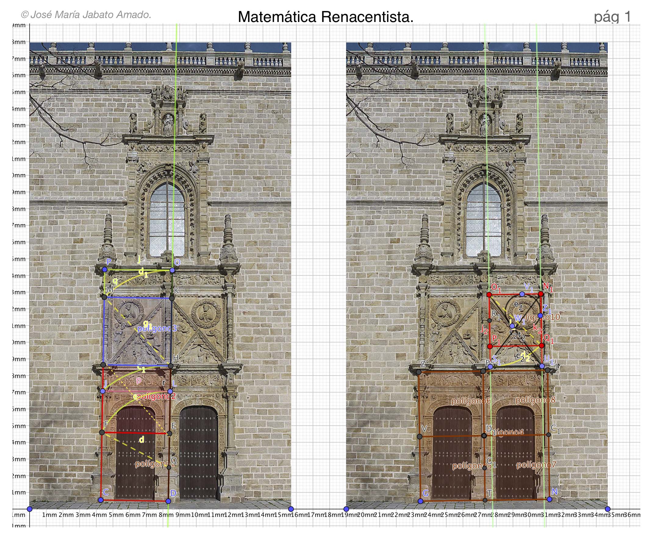 Geometría en la fachada de la Puerta del Perdón en la catedral de Coria, parte 2.