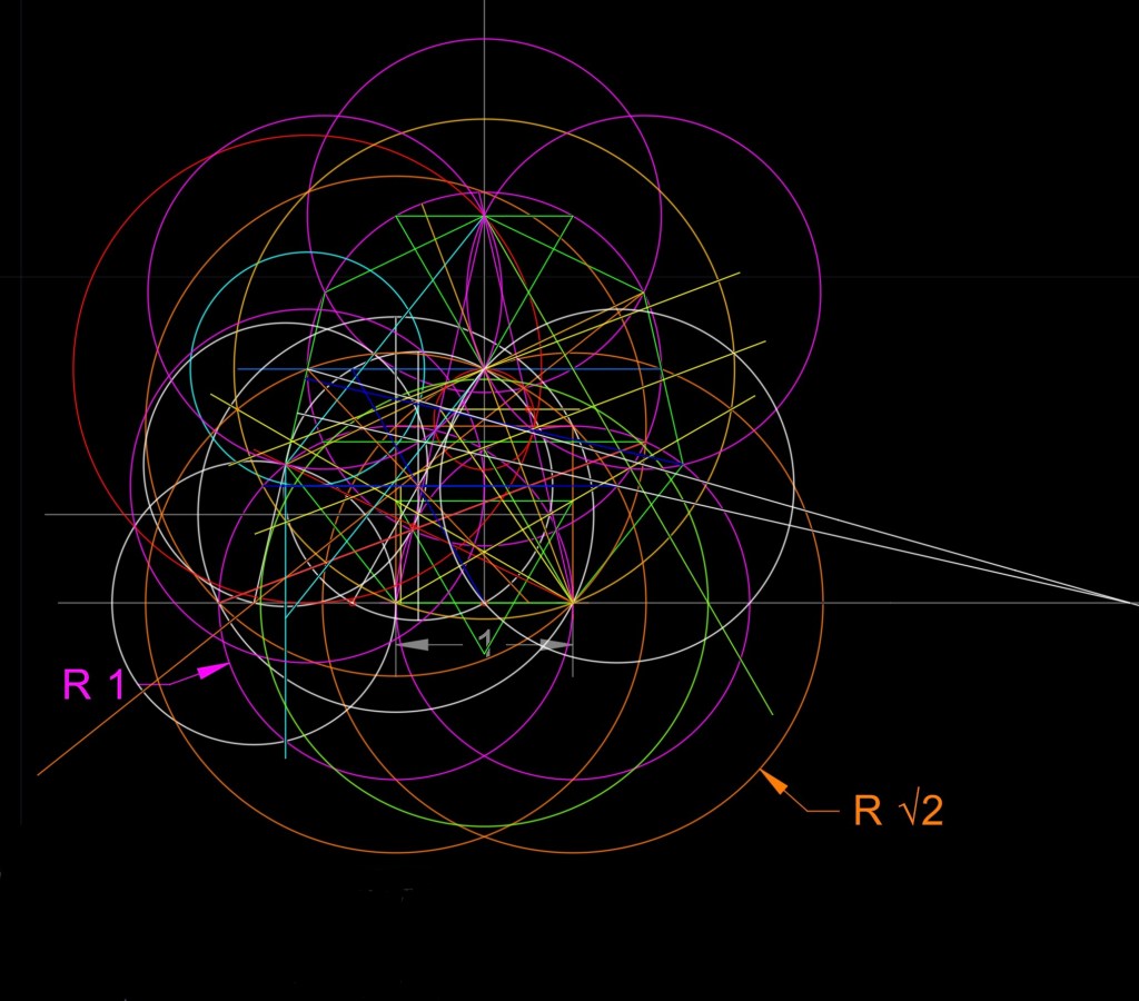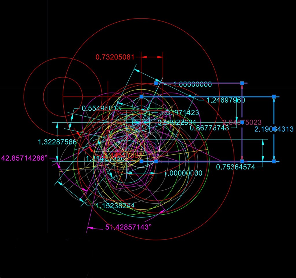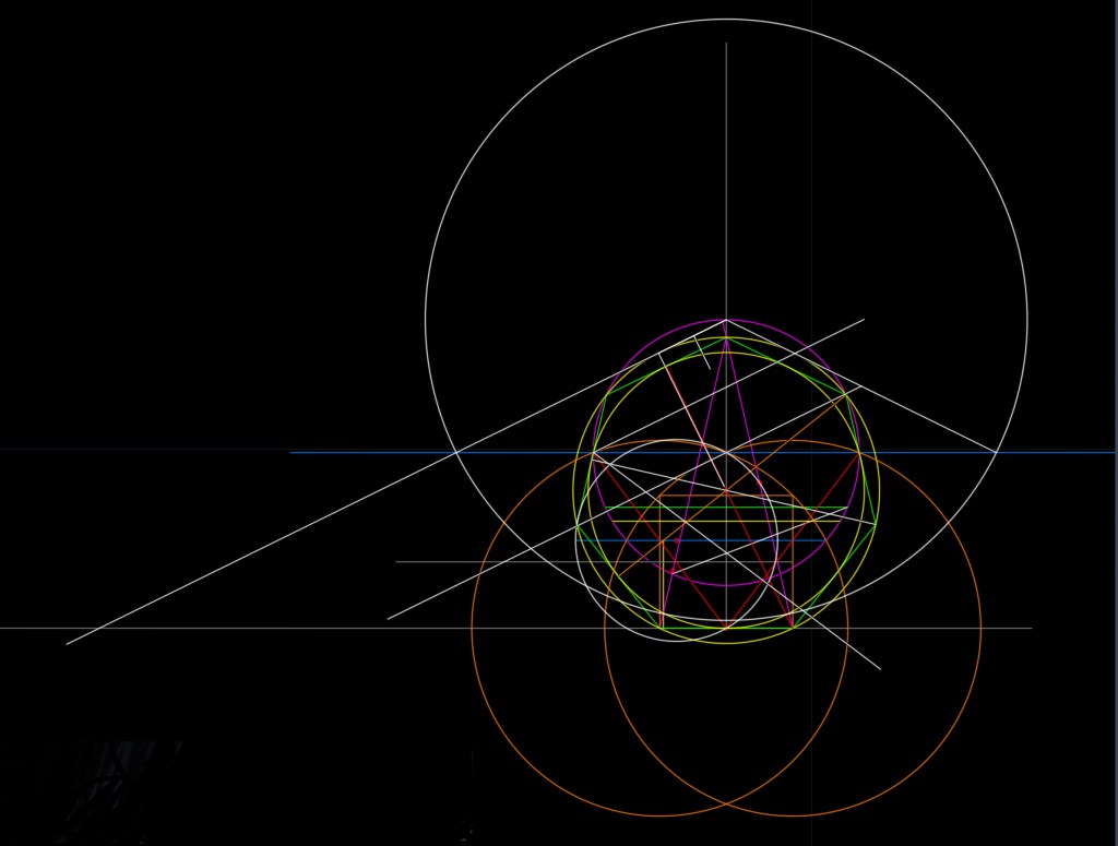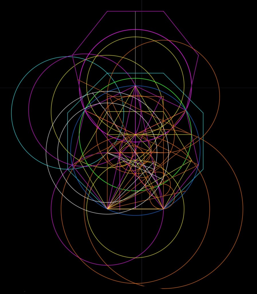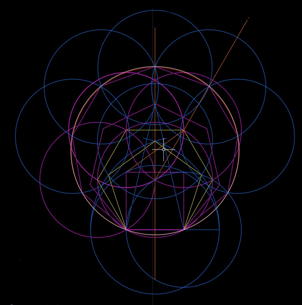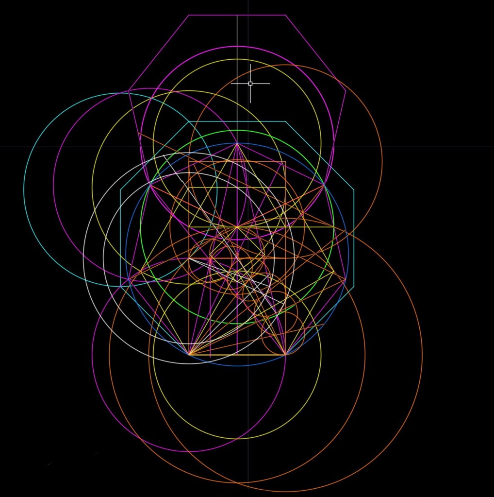 Busco relaciones con otros polígonos y coincidencias con cualquier ocurrencia de trazados de rectas y curvas. Hay cercanías de relaciones pero no me son para decir “eureka”, Gaus metió la pata, 🤣🤣.