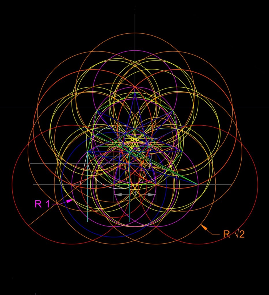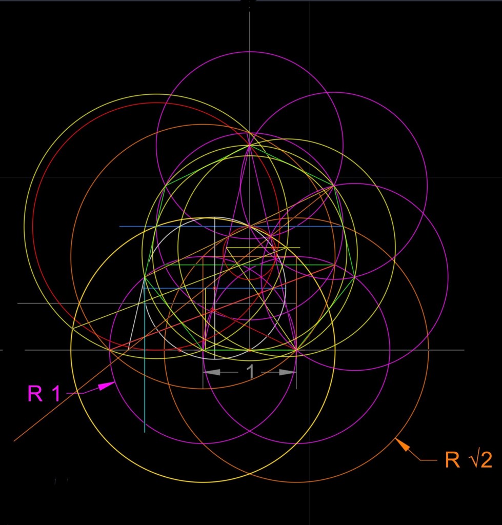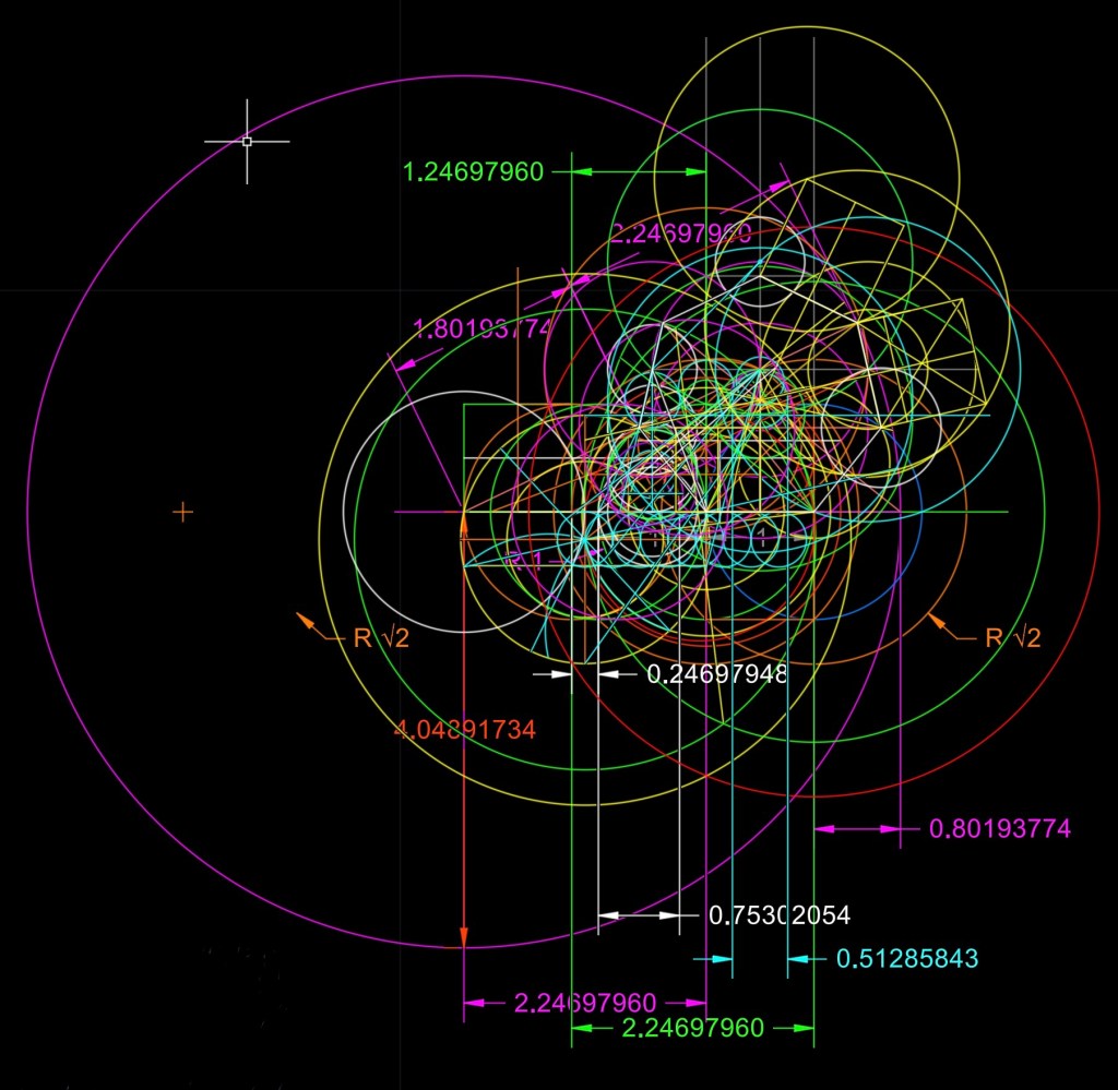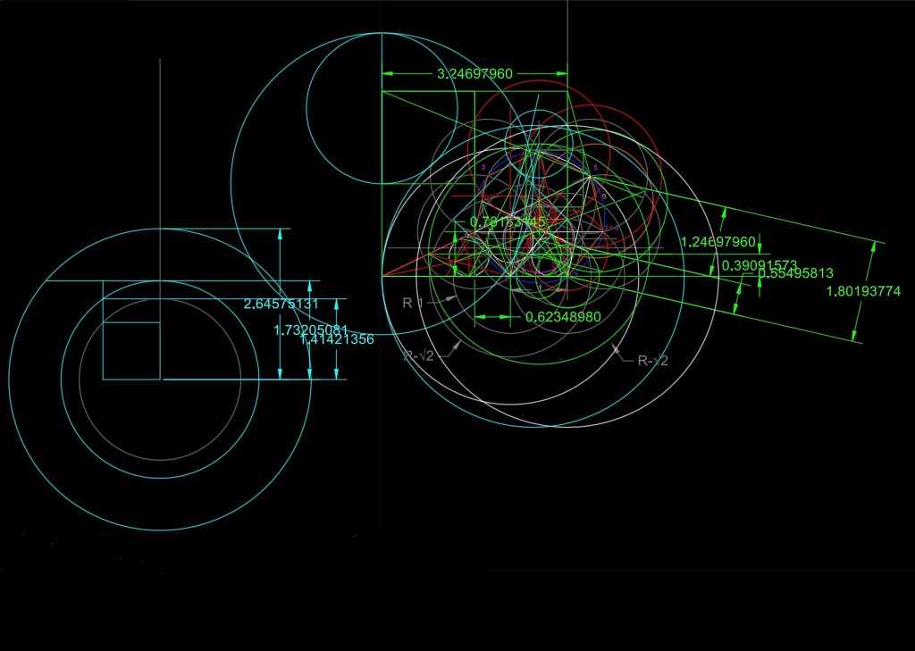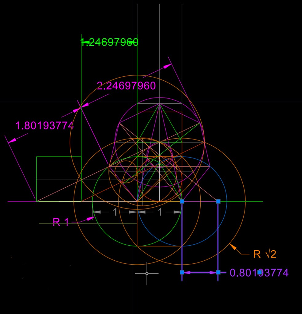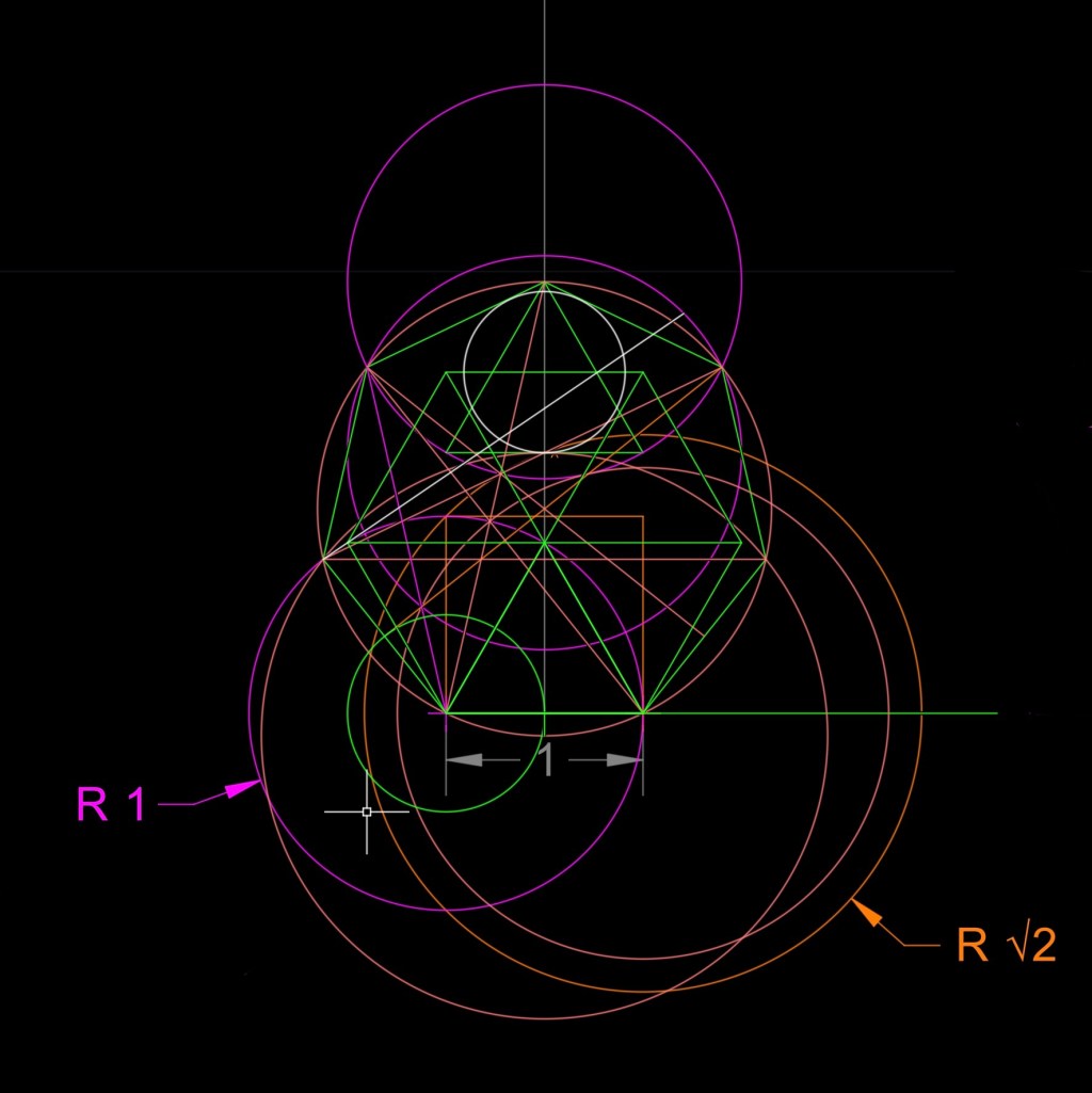 Busco relaciones con otros polígonos y coincidencias con cualquier ocurrencia de trazados de rectas y curvas. Hay cercanías de relaciones pero no me son para decir “eureka”, Gaus metió la pata, 🤣🤣.