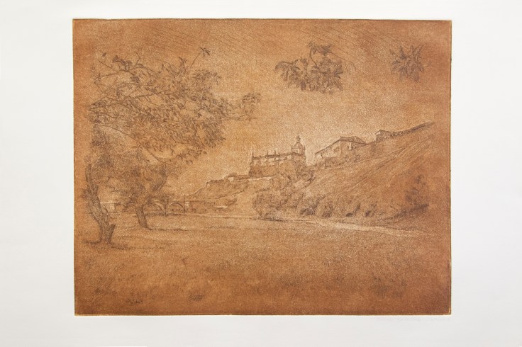 Estampaciones de grabados al aguafuerte en tinta sepia-sanguina y versiones coloreada a la acuarela. Si desea adquirir alguna en cada imagen tiene la opción de compra, se le enviará a tu domicilio lo antes posible.