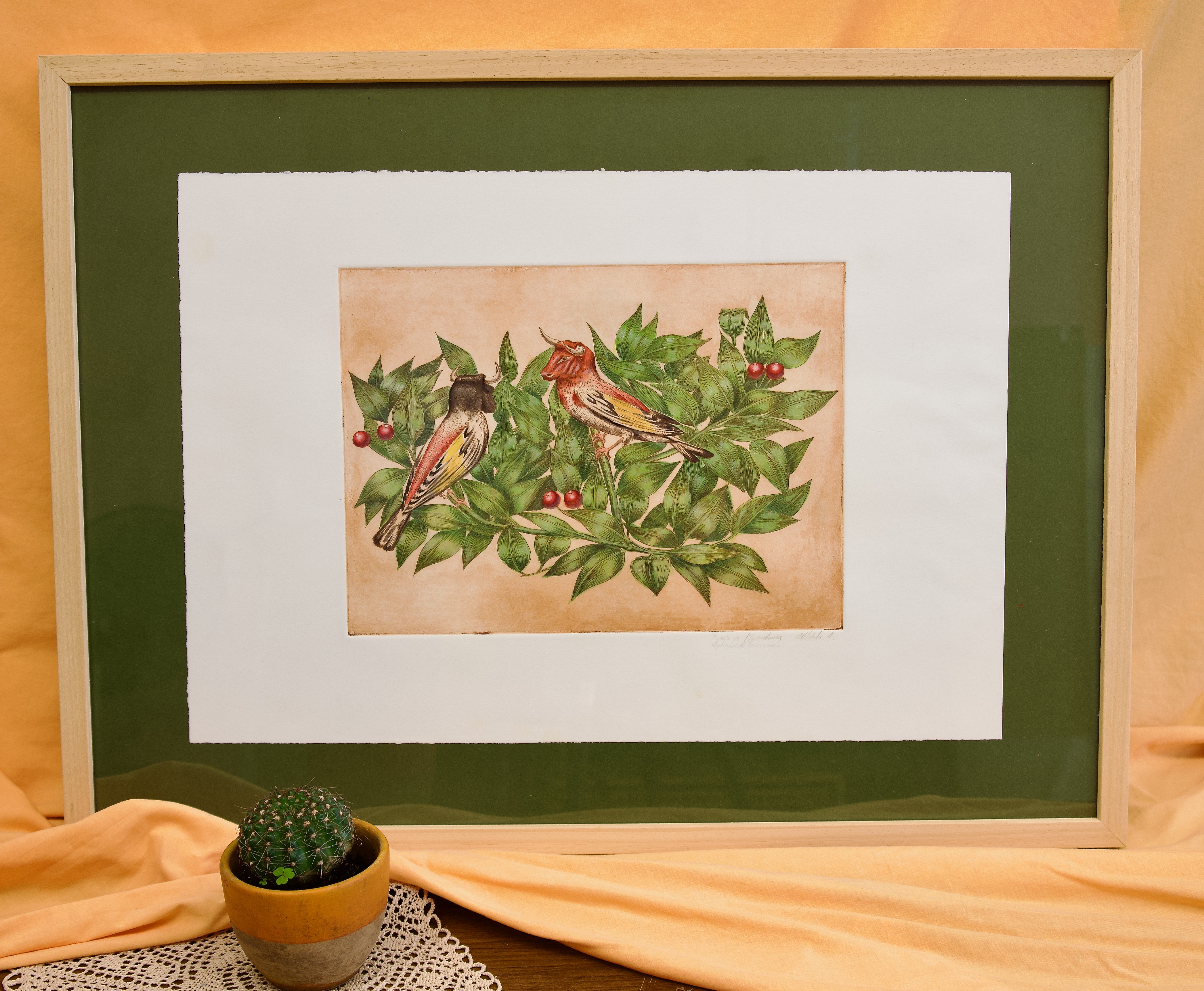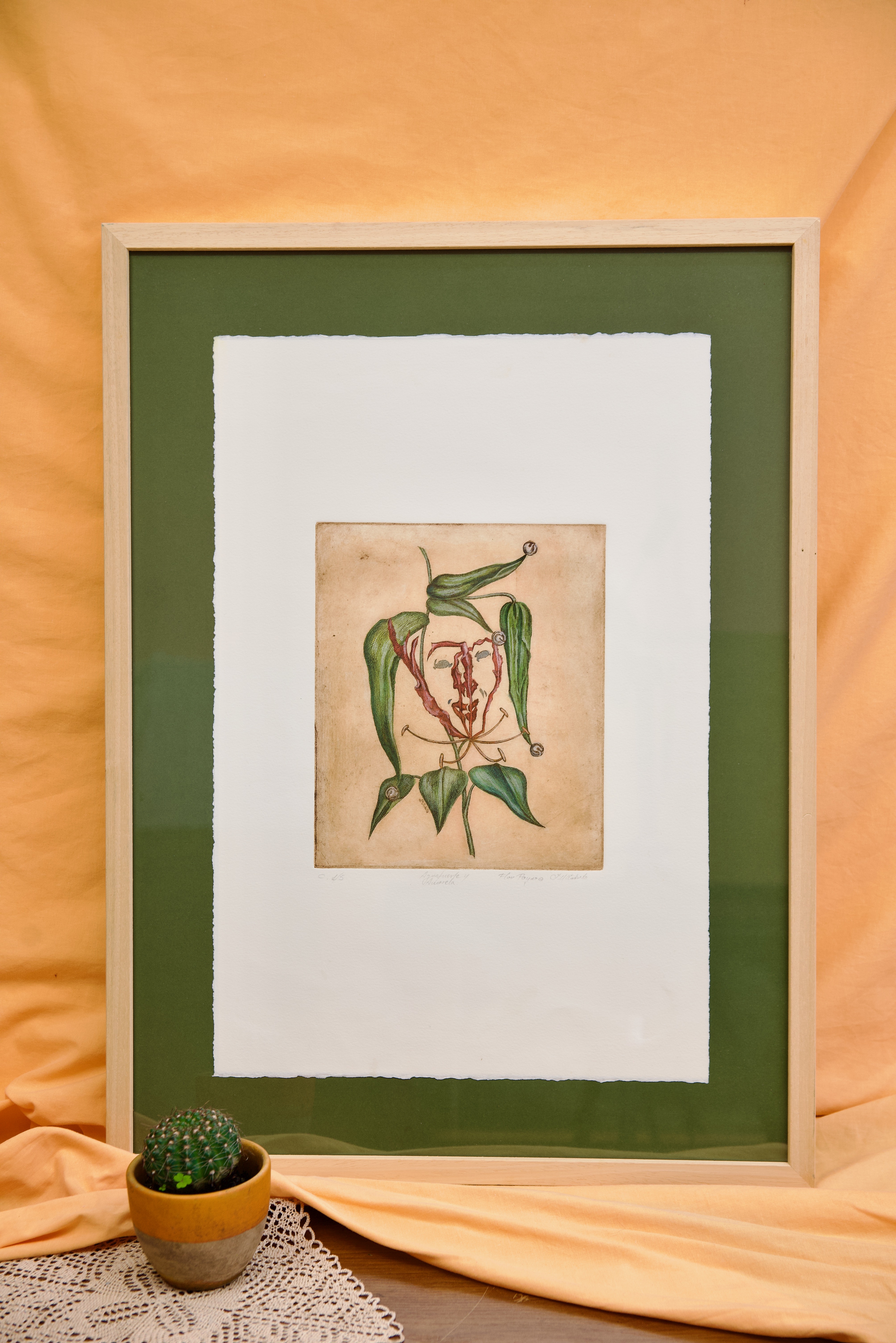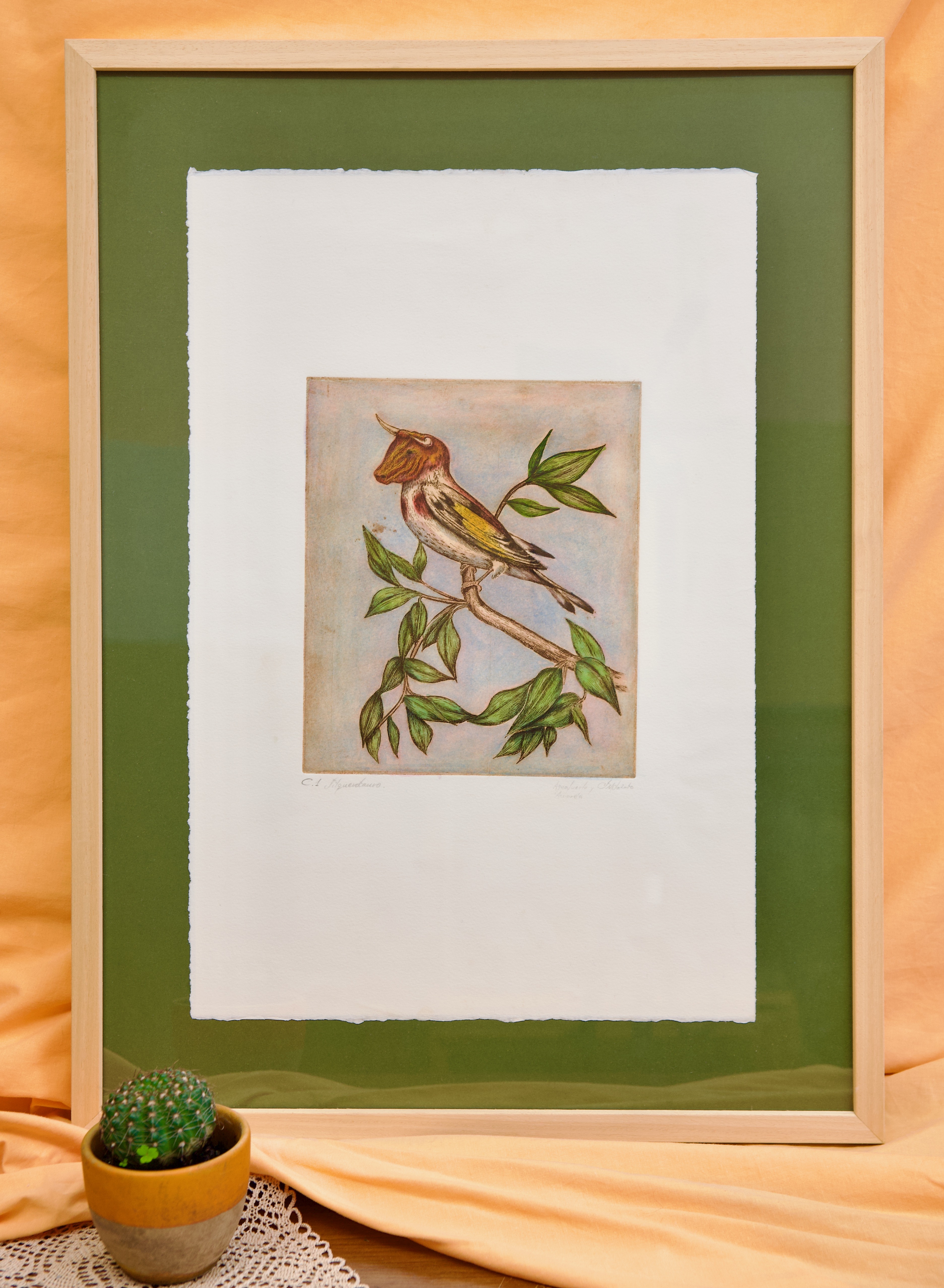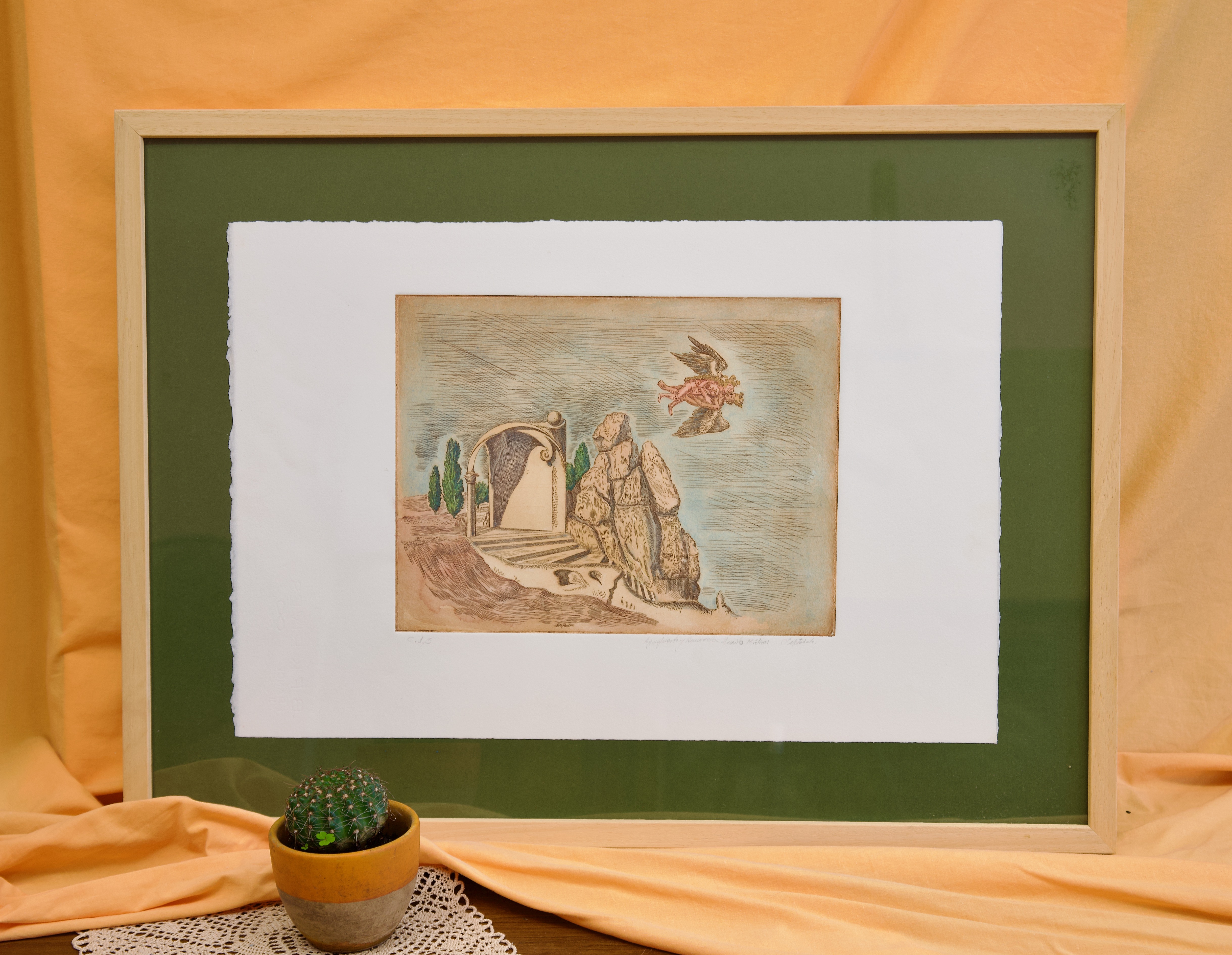 Impresión sobre algodón 100% 250gr/m2. Huella 24,5 x 33,5 cm, tamaño del pliego 57 x 38 cm. PVP: 180 € 4 UNIDADES DISPONIBLES + 1 EN TINTA NEGRA EN PAPEL DE MENOR TAMAÑO.