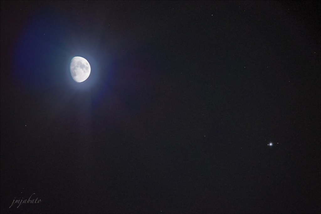 Aprovechando la cercanía aquí una foto molona con un 300 mm, dos fotos para poder tener la Luna a plena luz con los acompañantes.